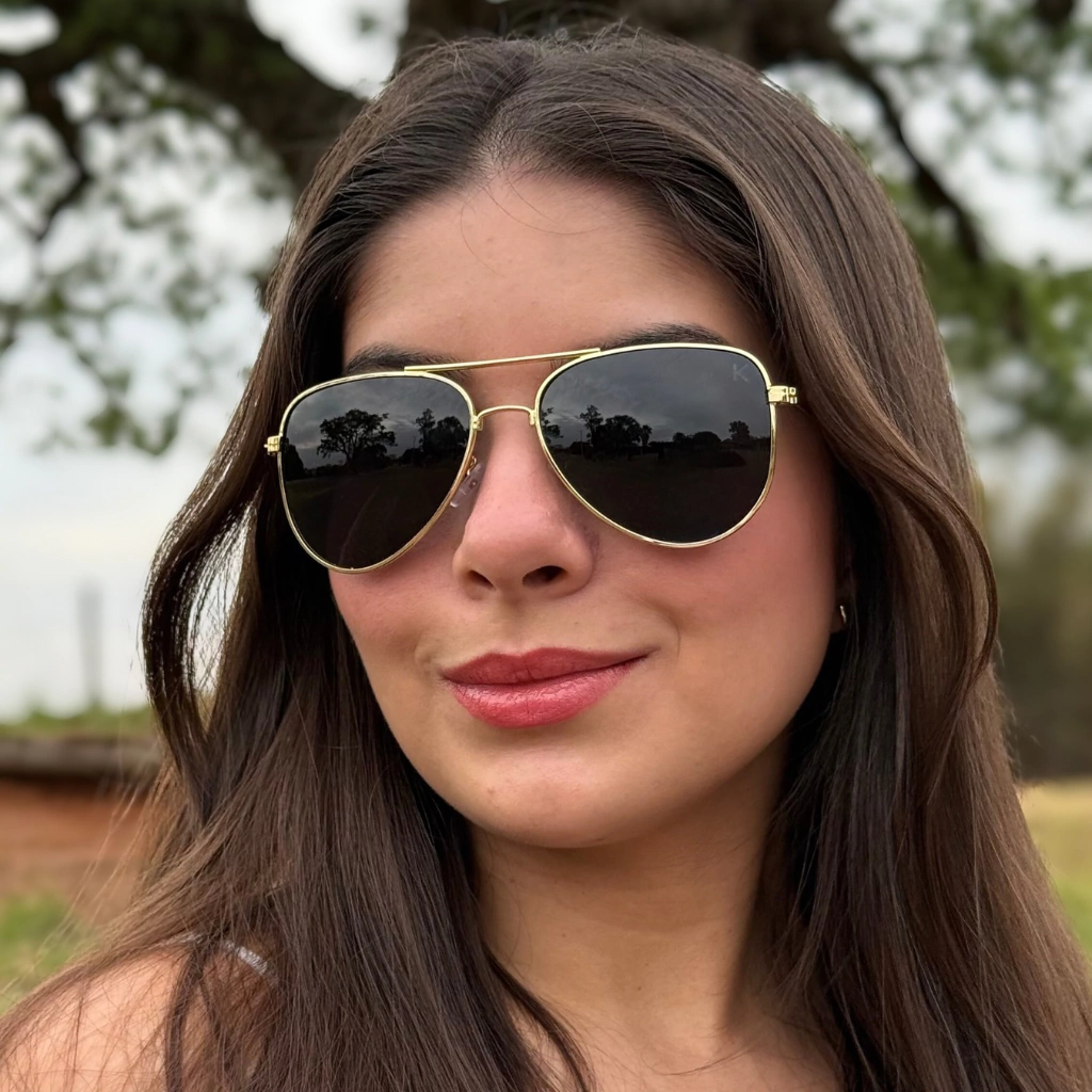 O Aero Gold da Klefis combina o charme atemporal do dourado com o design leve e sofisticado das armações metálicas.Um modelo feito pra quem quer se destacar com elegância e confiança.